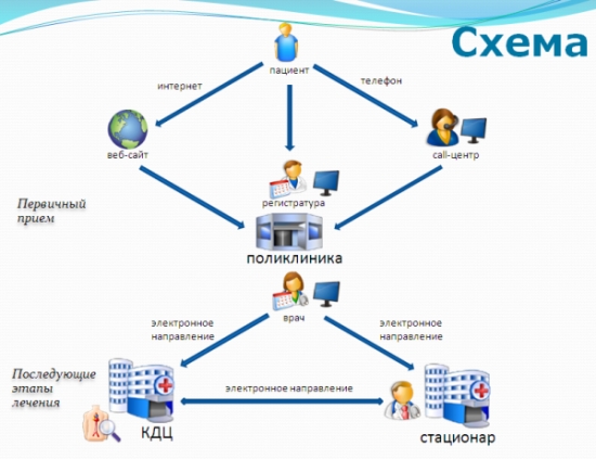 Все то, что сейчас на приеме врач пишет в обычной бумажной карте, он будет заносить сразу в электронную медкарту и подписывать электронной подписью. Результаты всех анализов, предыдущие обращения и др. – все это будет храниться в единой системе, через которую и будут заноситься данные (либо через веб-портал этой системы). Сам человек в любой момент сможет через интернет просмотреть свою карту, распечатать оттуда нужные документы.